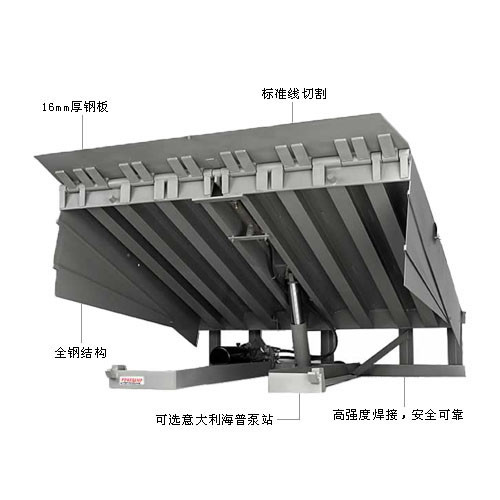 防爆固定登車橋設備簡述:性能:全液壓驅動,操作方便運行可靠;配置:焊接后無焊接殘渣,表面光滑平整;定義:采用特制異形鋼管,安全:選用防爆泵站電動機、防爆配電箱、進口密封件,真正做到防爆、防腐、防護。