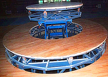 升降舞臺是一種可旋轉(zhuǎn)的特殊升降平臺,機(jī)械旋轉(zhuǎn)平臺設(shè)備中應(yīng)用比較廣泛的設(shè)備之一,在專業(yè)歌劇院、舞劇院、話劇院,會堂、影劇院、多功能廳、演播廳、文化體育場館、酒店等文化娛樂場所。